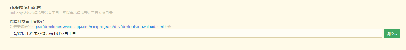 如果是第一次使用,需要在弹窗中配置小程序ide的相关路径,才能运行成功。如下图,需在输入框输入微信开发者工具的安装路径: