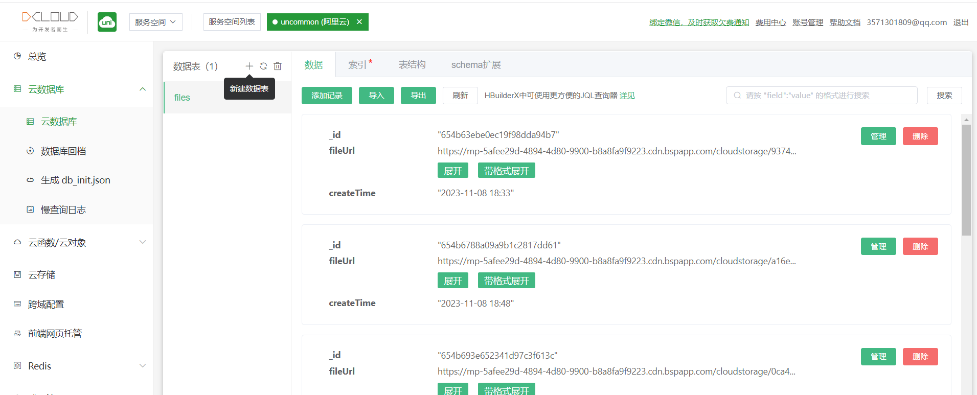 注意将 files 改为自己的云数据库里的表名