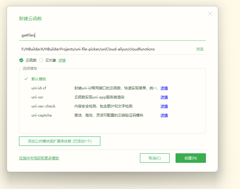 要分别创建addFiles和getFiles两个云函数
