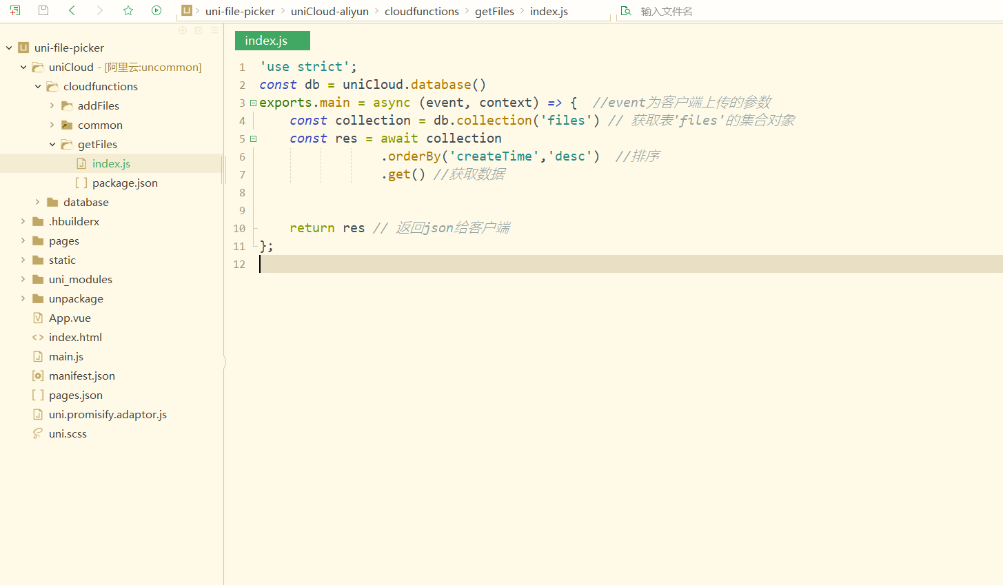 };在getFiles.index.js里写函数: