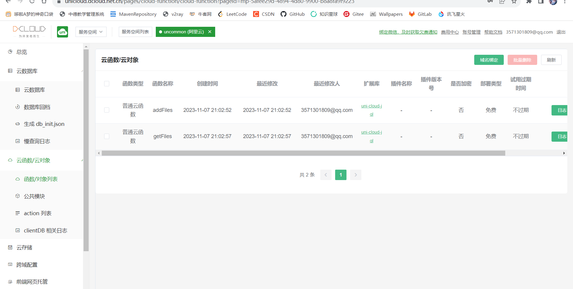 而后可以在web控制台内看到上传的云函数