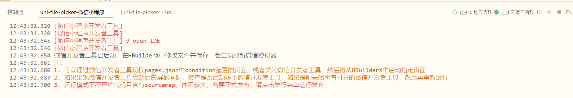 注意右上方的选择连接本地云函数还是云端云函数