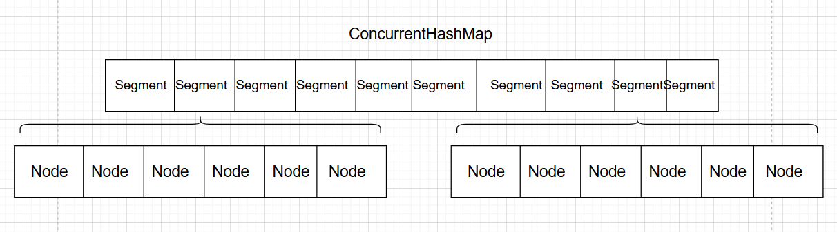在JDK1.7及其之前,ConcurrentHashMap采用的是分段锁,也就是先将ConcurrentHashMap分成一定数量的段Segment,构成一个Segment数组,数组中的元素才是HashMap的键值对Node结点。可以理解为维护了一个Segment数组,数组中的元素是HashMap。
