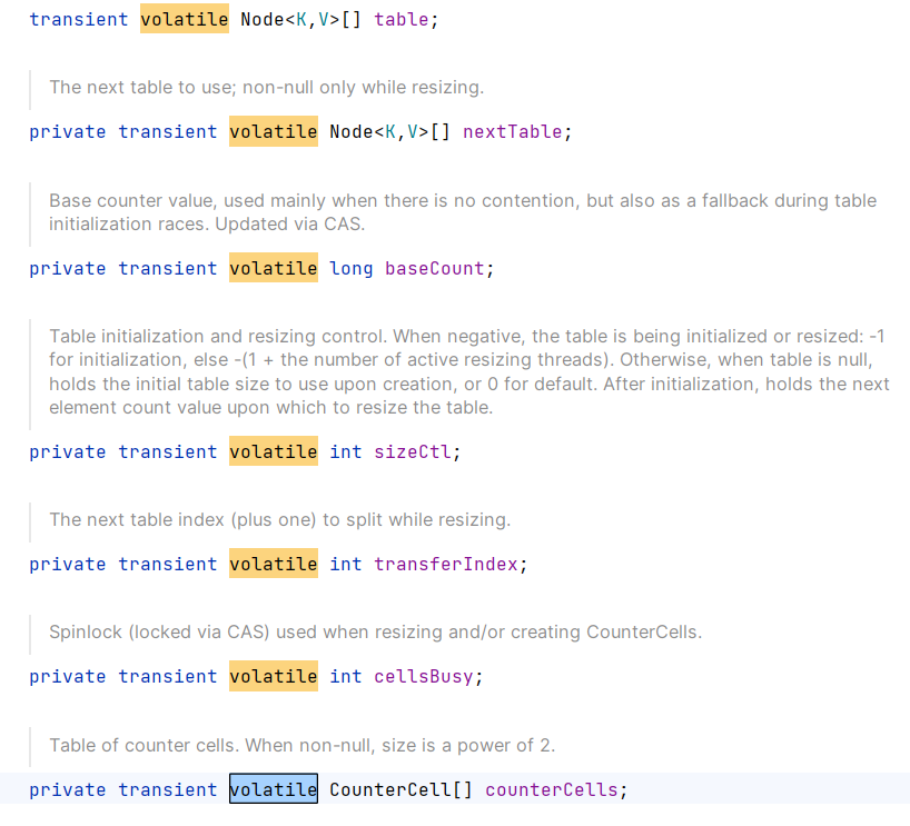 可以看到,除了基础的总数baseCount外,ConcurrentHashMap还维护了一个CounterCell数组,通过将baseCount与CounterCell数组中的每个数相加得到最终总数。