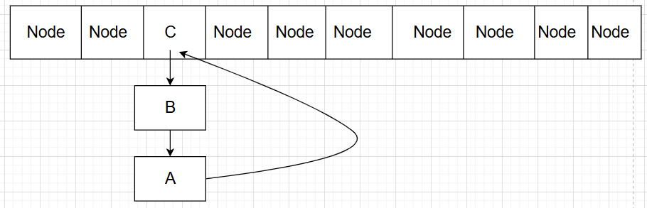 由于新链表头结点已经由null转变成了C,导致A与C结点构成了循环: