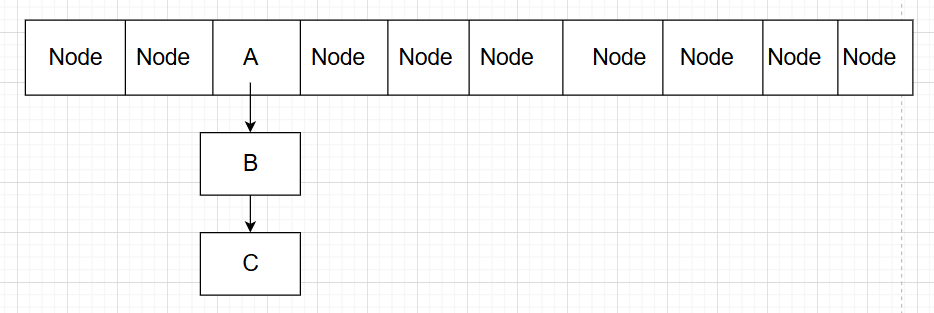 对于链表A->B->C: